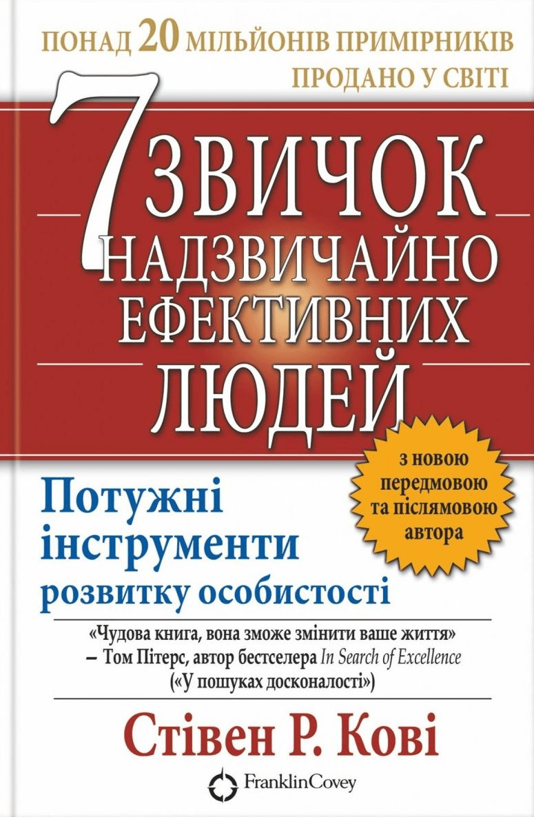 В книзі Стівен Кові розглядає 7 звичок які притаманні людям які досягають значних успіхів у своєму житті. Перечитуючи цю книгу після 13 років - моє враження від неї досі значне.